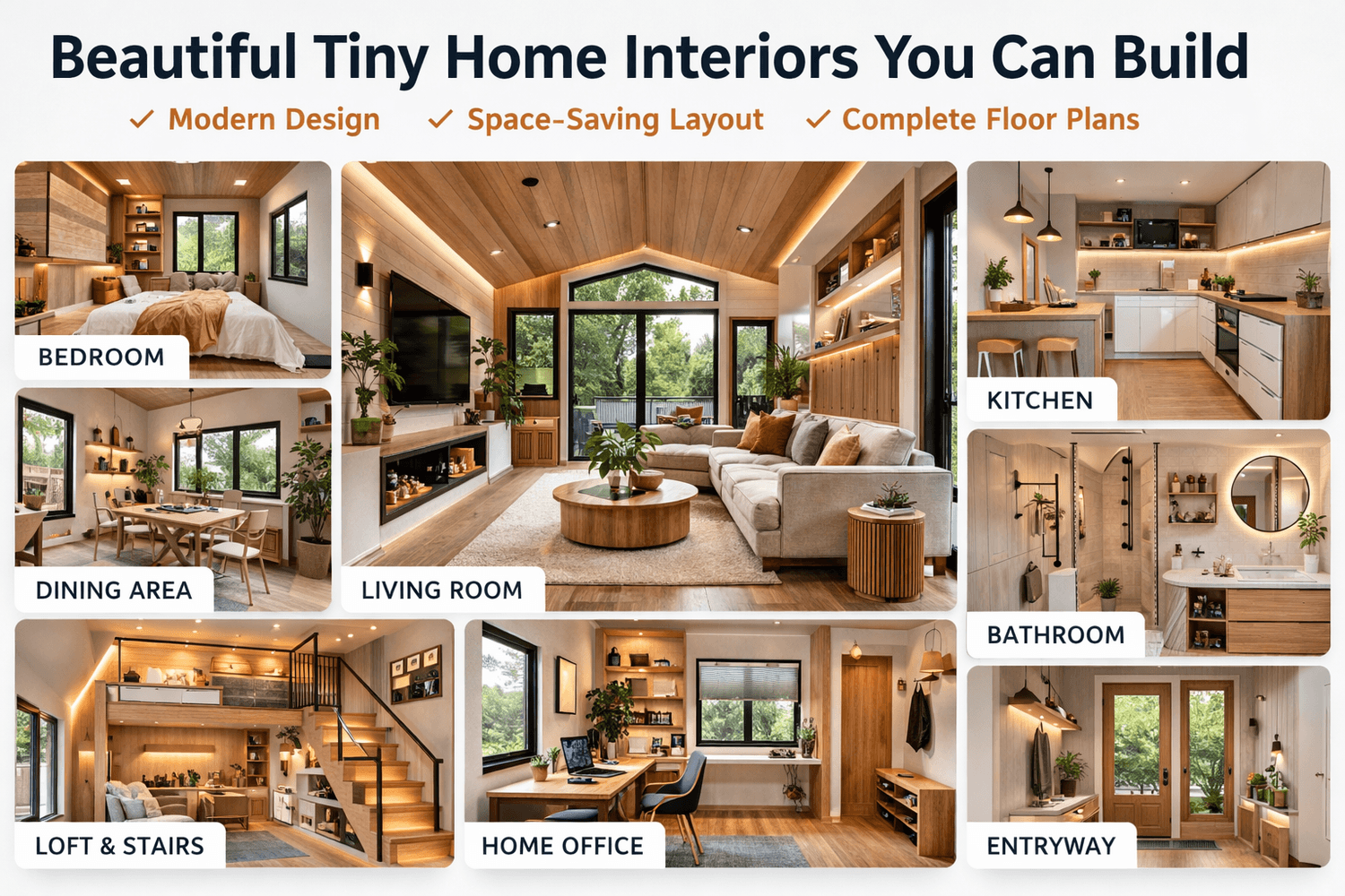 Even with limited space, these tiny house layouts are designed to feel open, comfortable, and functional for everyday living